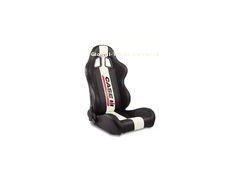 UNIVERSAL RECLINABLE WHITE/BLACK/PU LEATHER RACING SEAT+SLIDER DRIVER PASSAGER SIDE